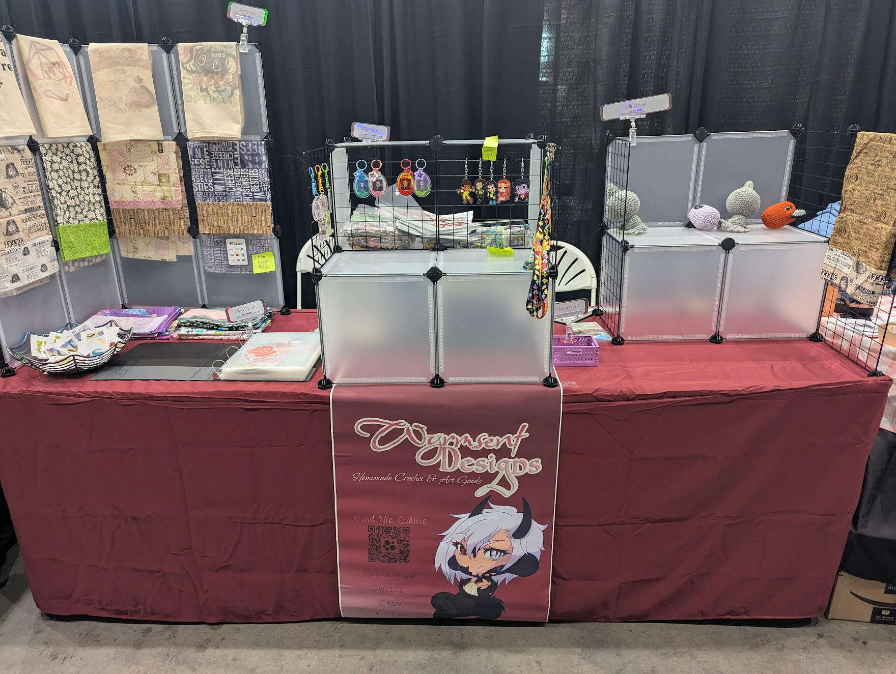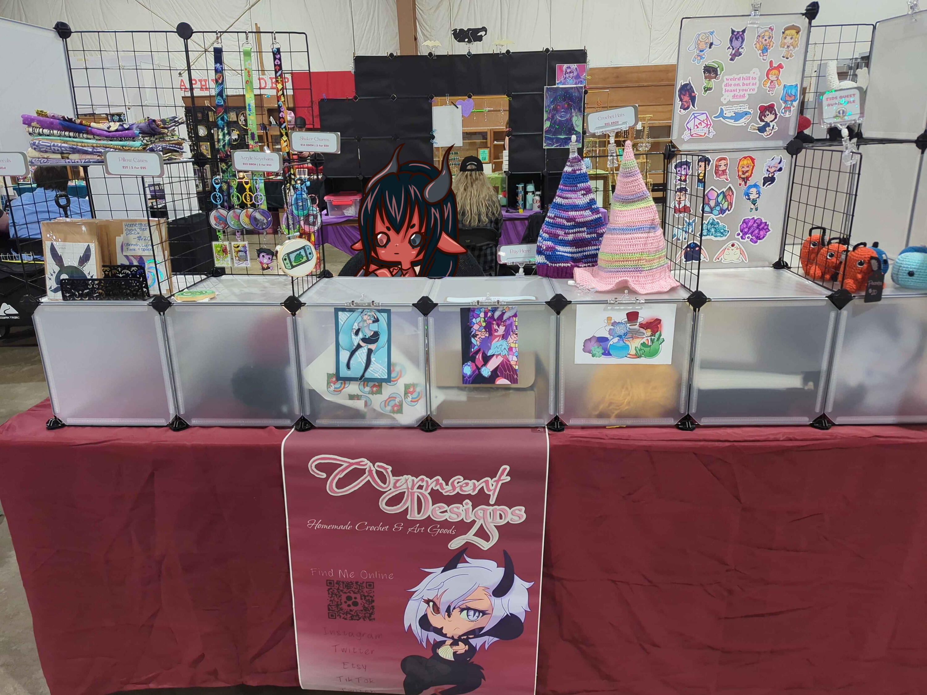 My name is Ashe and I'm the creative brain behind Wyrmsent Designs. I'm primarily a fiber artist, but also work in illustration and graphic design. I've been drawing since my elementary days, and picked up knitting and cross-stitch in high school. Crochet came recently, but has become a comfy spot for me to use to relax.My 2025 goal was to start tabling at conventions, which I did and did fairly well at.My 2026 goal is to further develop my art style, produce more original works and continue to grow my online store, convention appearances and truly hone my craft.
